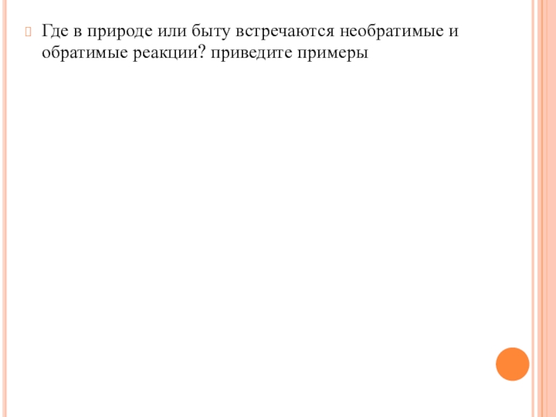 Слайд 8Где в природе или быту встречаются необратимые и обратимые реакции? приведите