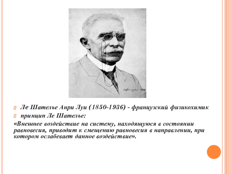 Лe Шателье Анри Луи (1850-1936) - французский физикохимикпринцип Ле Шателье:«Внешнее воздействие на систему, находящуюся в состоянии равновесия,
