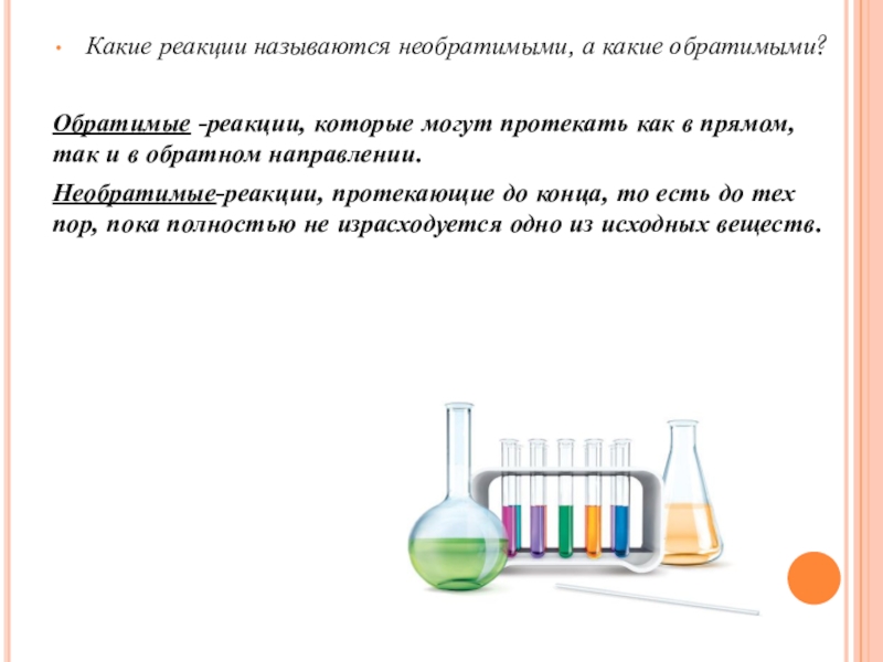 Слайд 7Какие реакции называются необратимыми, а какие обратимыми?