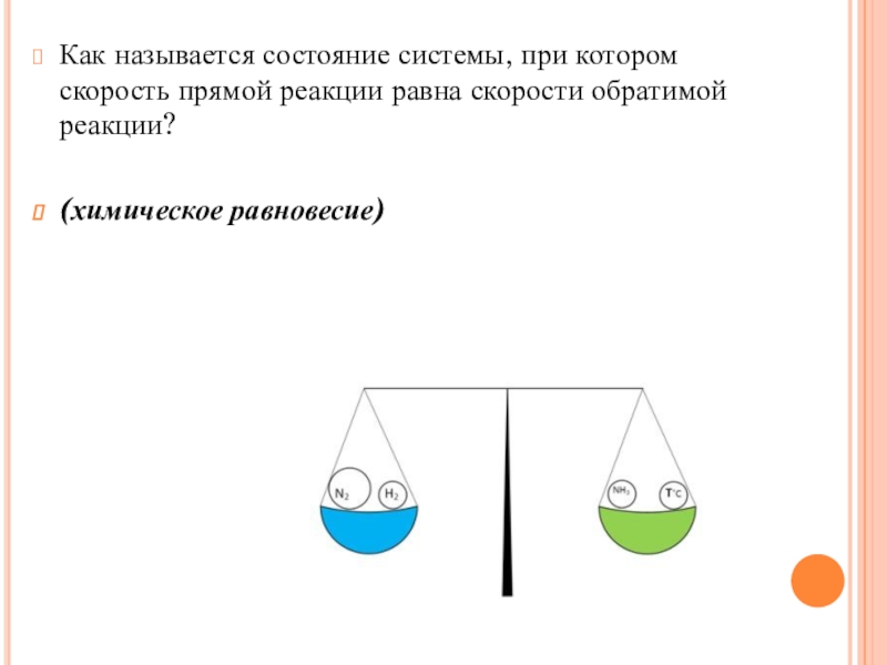 Слайд 12Как называется состояние системы, при котором скорость прямой реакции равна скорости