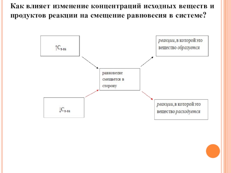 Слайд 16Как влияет изменение концентраций исходных веществ и продуктов реакции на смещение