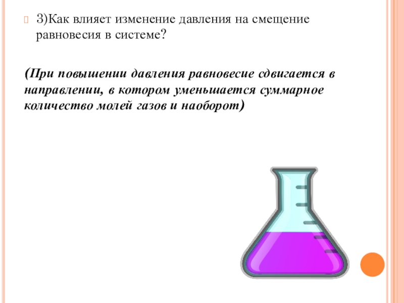 Слайд 63)Как влияет изменение давления на смещение равновесия в системе?