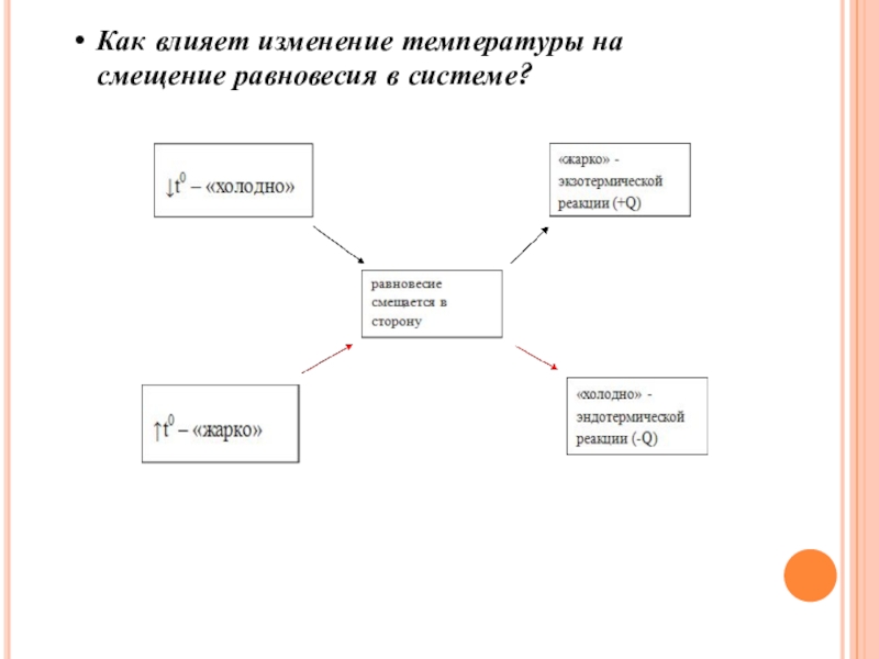 Слайд 15Как влияет изменение температуры на смещение равновесия в системе?