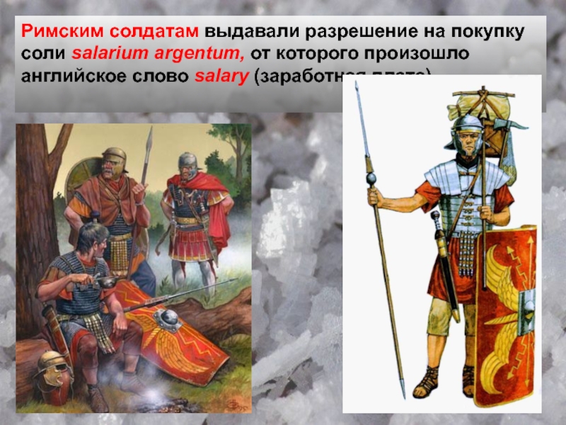 Римским солдатам выдавали разрешение на покупку соли salarium argentum, от которого произошло английское слово salary (заработная плата).