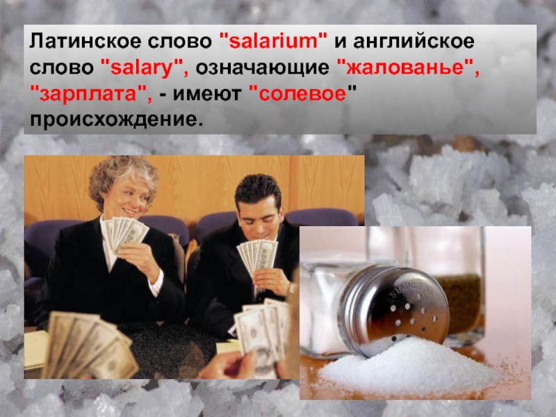 Слайд 5Латинское слово "salarium" и английское слово "salary", означающие "жалованье", "зарплата", -