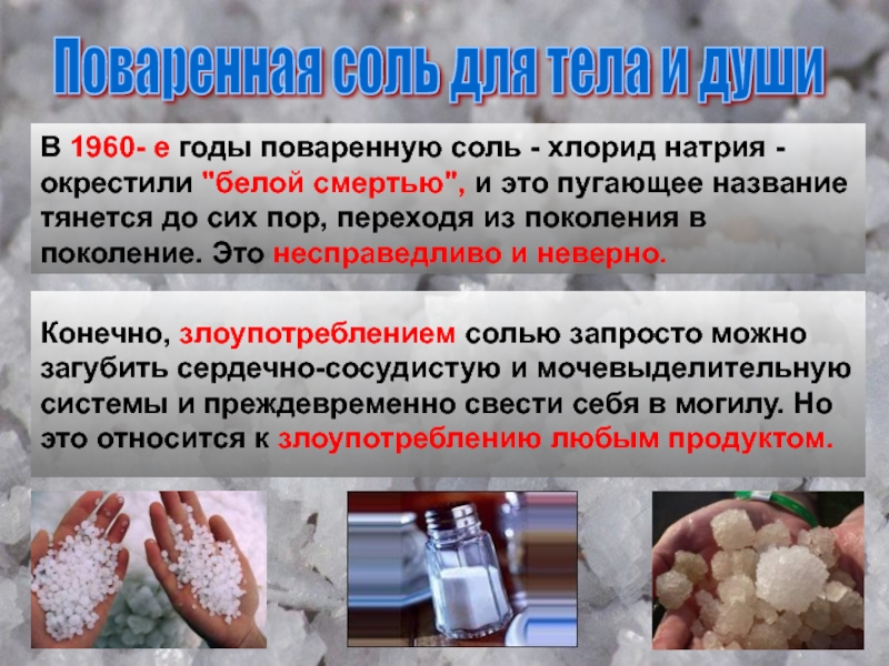 Слайд 18В 1960- е годы поваренную соль - хлорид натрия - окрестили