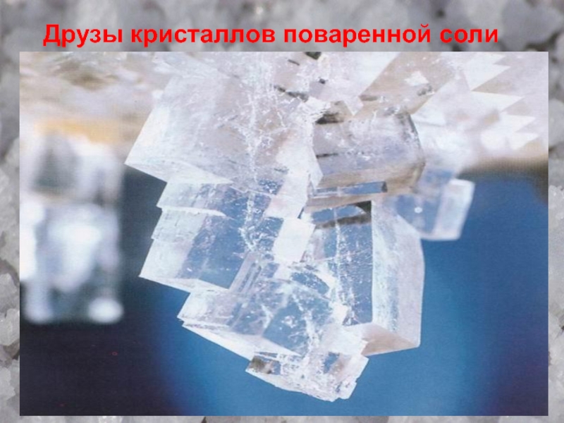 Слайд 16Крупные кристаллы поваренной соли выставляются в минералогических музеях