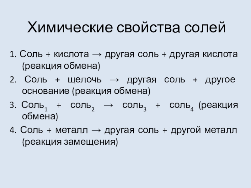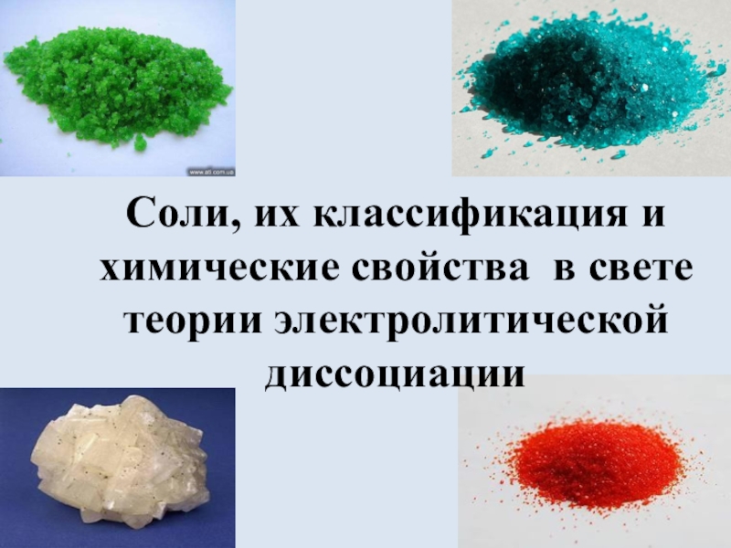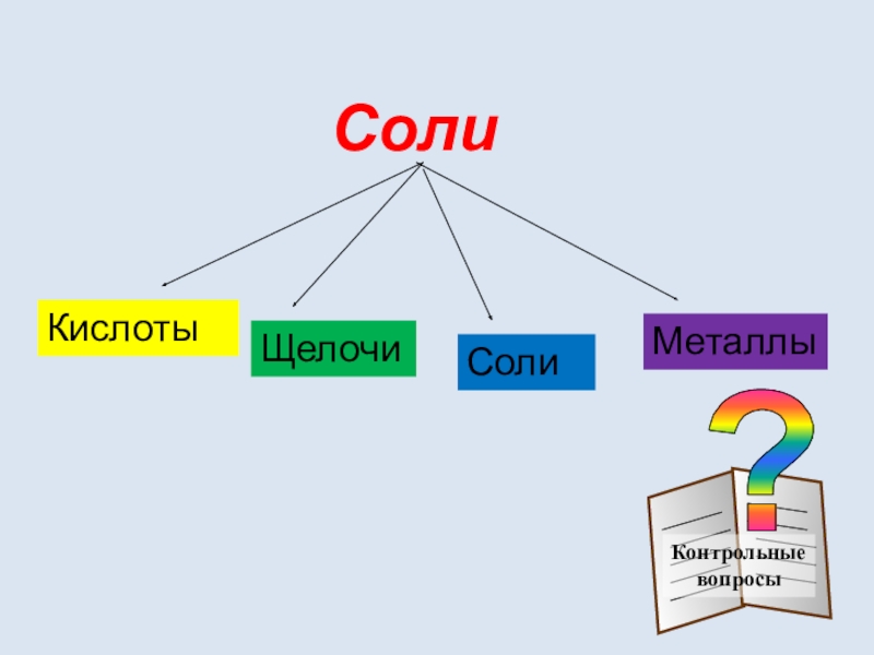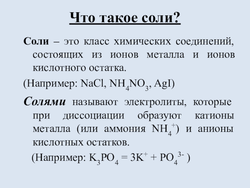 Соли – это класс химических соединений, состоящих из ионов металла и ионов кислотного остатка.
