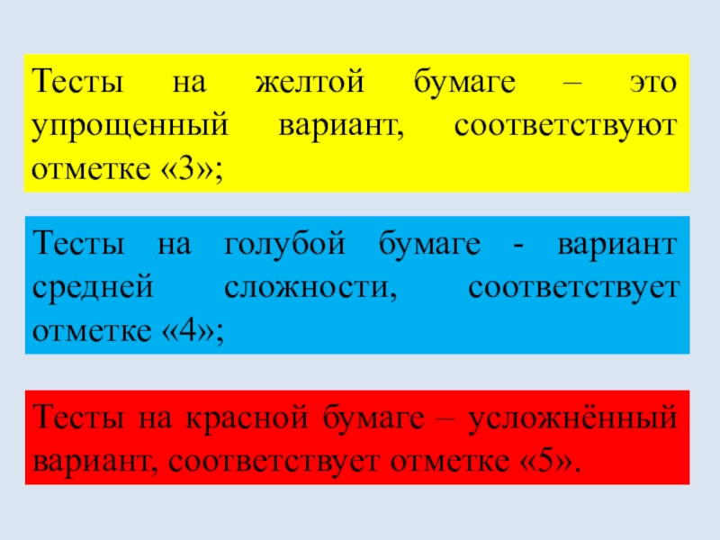 Тесты на красной бумаге – усложнённый вариант, соответствует отметке «5».