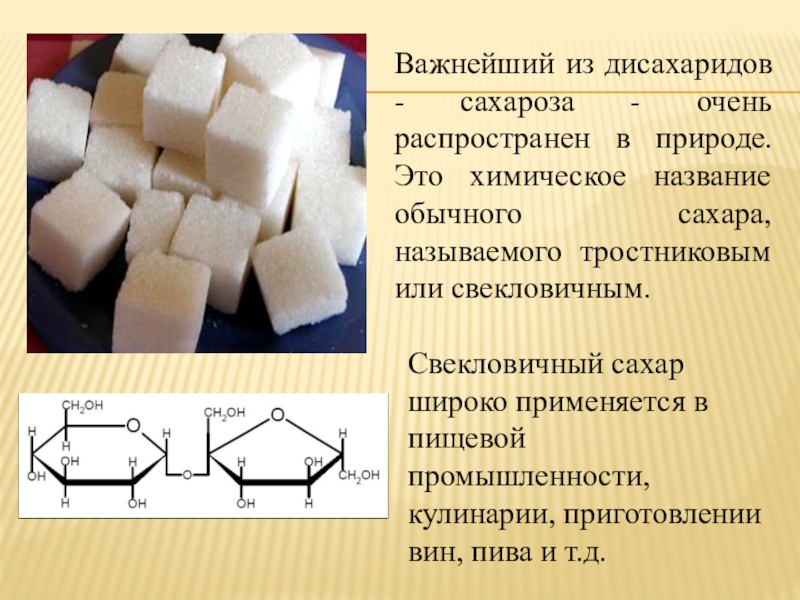 Свекловичный сахар широко применяется в пищевой промышленности, кулинарии, приготовлении вин, пива и т.д.