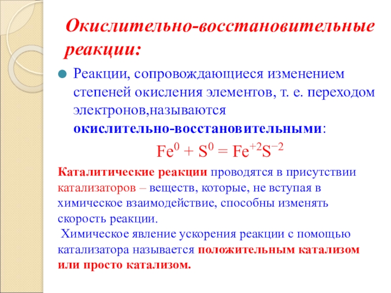 Каталитические реакции проводятся в присутствии катализаторов – веществ, которые, не вступая в химическое взаимодействие, способны изменять скорость реакции.