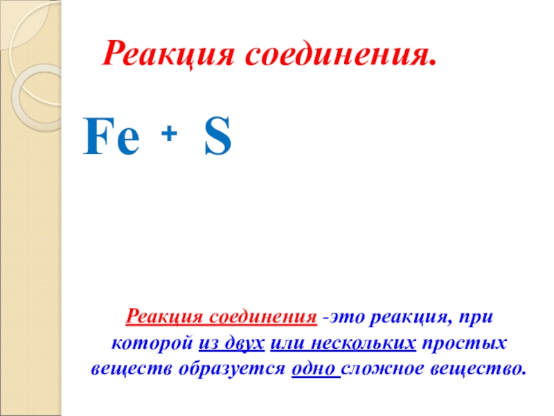 Реакция соединения -это реакция, при которой из двух или нескольких простых веществ образуется одно сложное вещество.