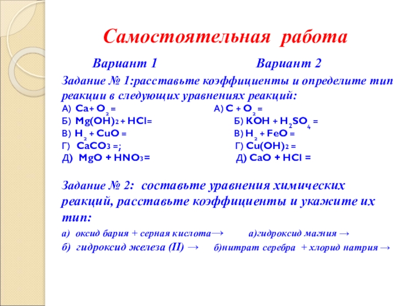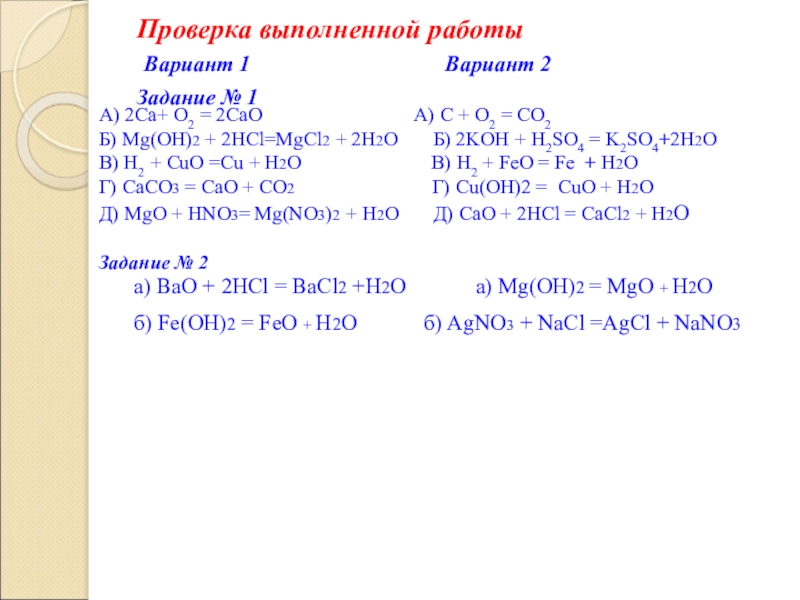 Д) MgO + HNO3= Mg(NO3)2 + H2O Д) CaO + 2HCl = CaCl2 + H2O