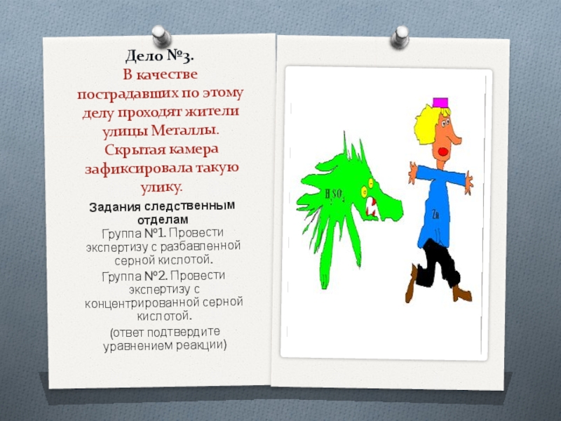 Группа №1. Провести экспертизу с разбавленной серной кислотой.