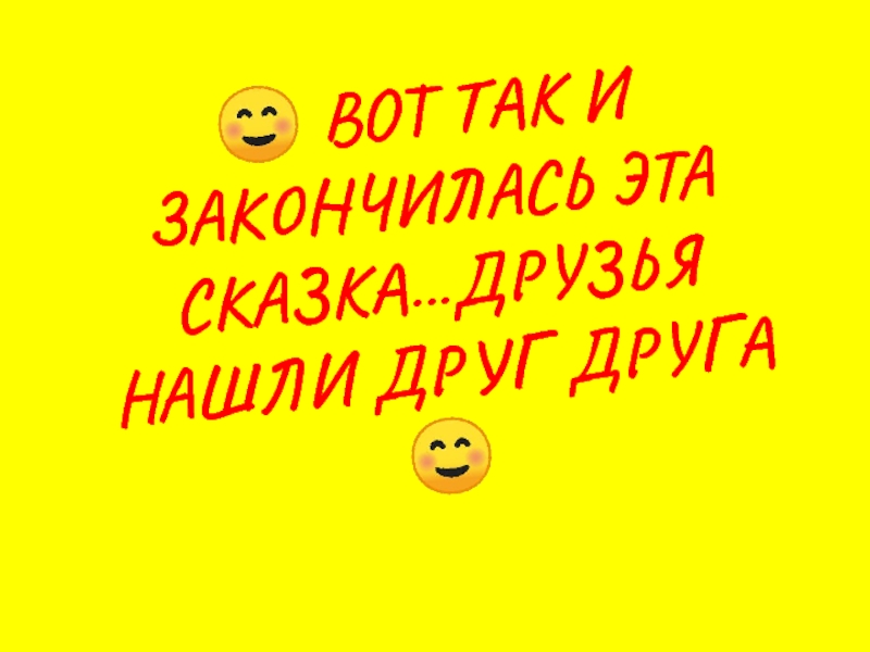 Слайд 10 ВОТ ТАК И ЗАКОНЧИЛАСЬ ЭТА СКАЗКА…ДРУЗЬЯ НАШЛИ ДРУГ ДРУГА 