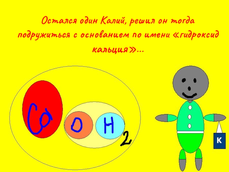 Слайд 9Остался один Калий, решил он тогда подружиться с основанием по имени
