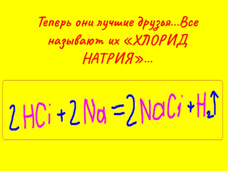 Слайд 8Теперь они лучшие друзья…Все называют их «ХЛОРИД НАТРИЯ»…