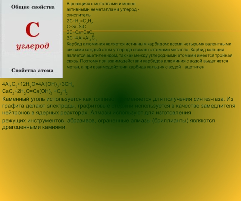 периода, в котором расположен химический элемент. При переходе сверху вниз по группе неметаллические свойства ослабляются, а металлические возрастают, поэтому углерод и