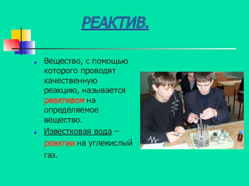 примеры, когда известковая вода является определяемым веществом, а когда – реактивом?
