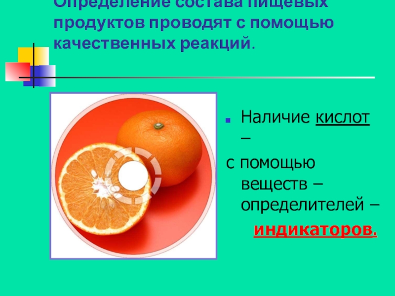 Слайд 13Определение состава пищевых продуктов проводят с помощью качественных реакций.