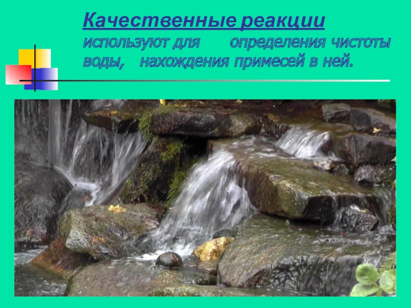 Слайд 17Качественные реакции используют для определения чистоты воды, нахождения