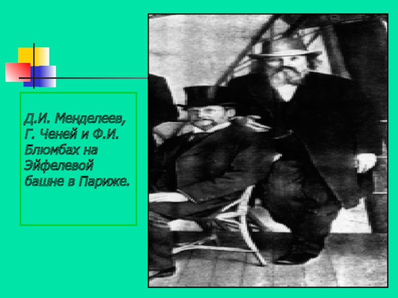Д.И. Менделеев, Г. Ченей и Ф.И. Блюмбах на Эйфелевой башне в Париже.