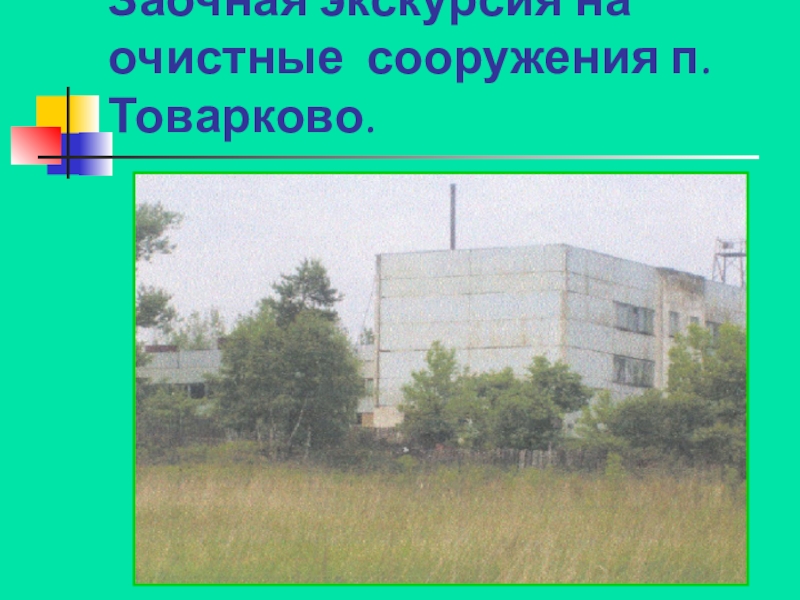 Слайд 19Заочная экскурсия на очистные сооружения п. Товарково.