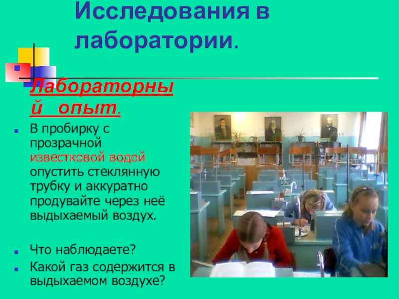 известковой водой опустить стеклянную трубку и аккуратно продувайте через неё выдыхаемый воздух.