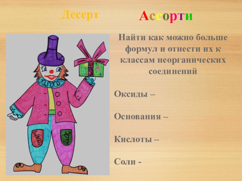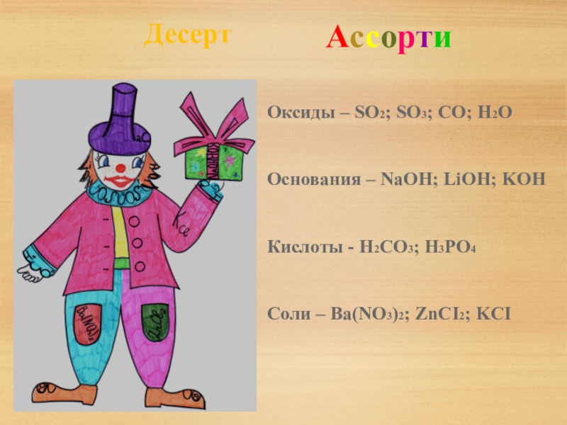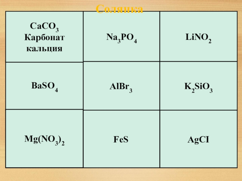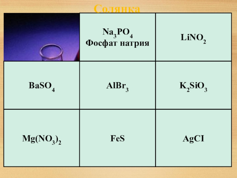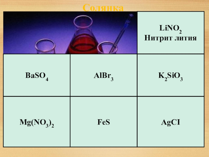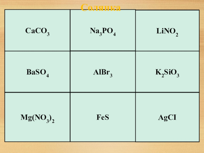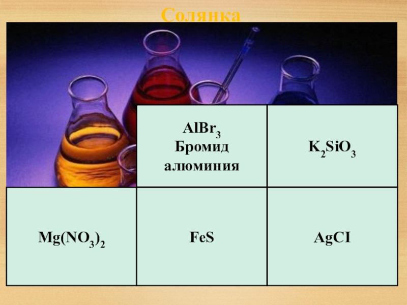 Соли – Ва(NO3)2; ZnCI2; KCI