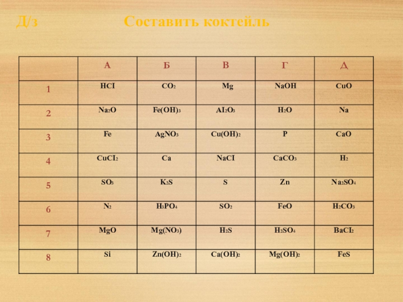 Найти как можно больше формул и отнести их к классам неорганических соединений