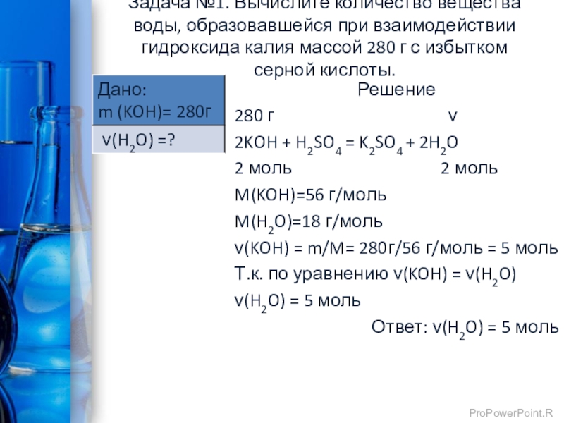 (KOH) = m/M= 280г/56 г/моль = 5 моль