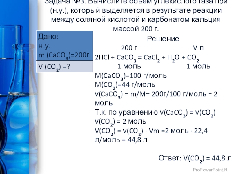 ν(CaCO3) = m/M= 200г/100 г/моль = 2 моль