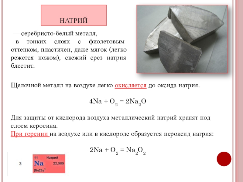 Щелочной металл на воздухе легко окисляется до оксида натрия.