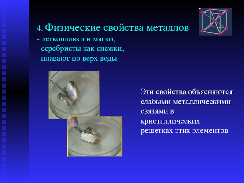 Эти свойства объясняются слабыми металлическими связями в кристаллических решетках этих элементов