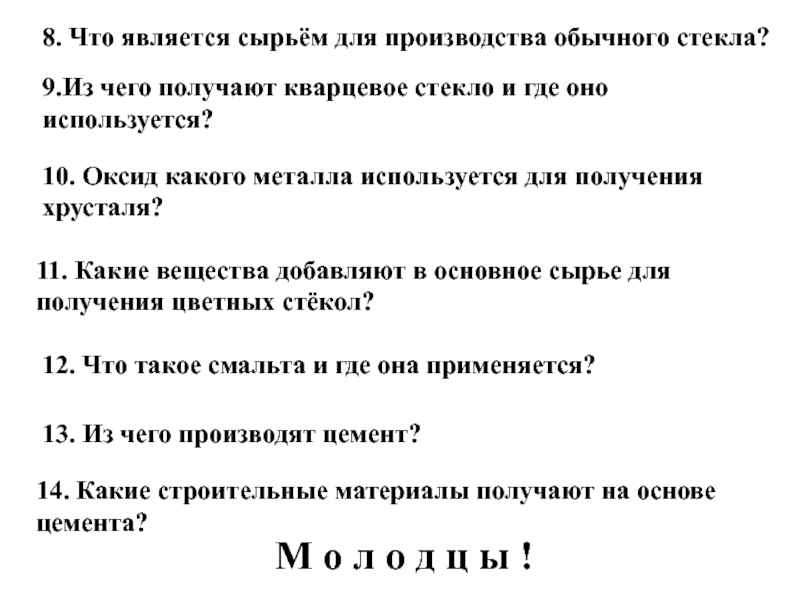 8. Что является сырьём для производства обычного стекла?