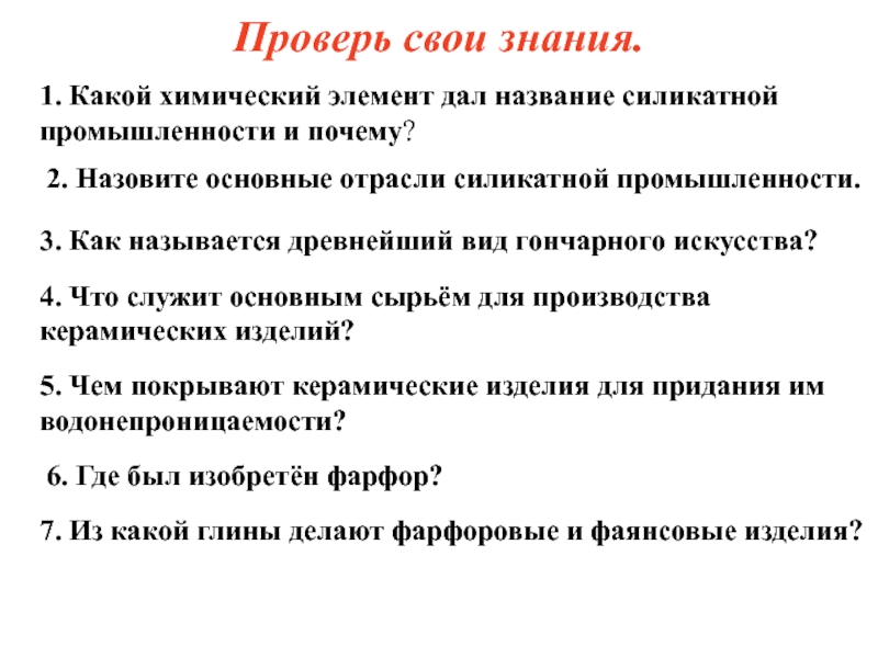 2. Назовите основные отрасли силикатной промышленности.