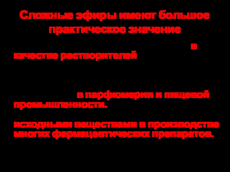 Слайд 14Сложные эфиры имеют большое практическое значение