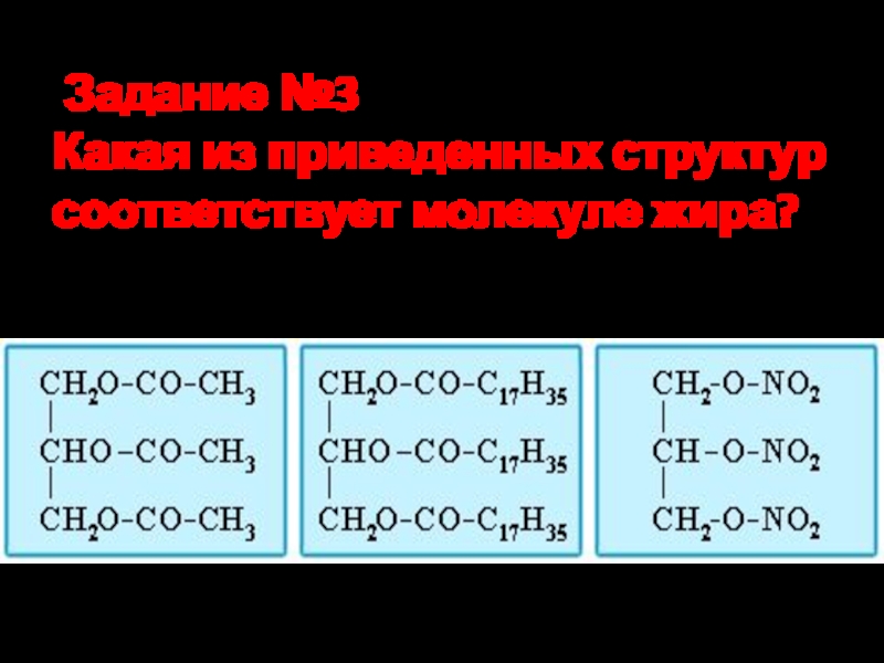 Какая из приведенных структур соответствует молекуле жира?