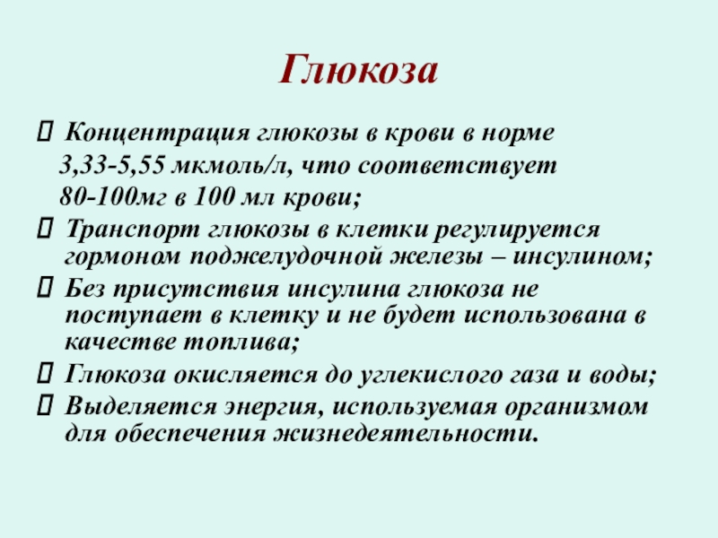 Концентрация глюкозы в крови в норме
