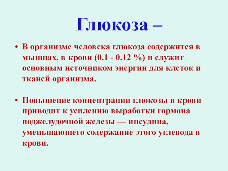 Слайд 8Глюкоза –