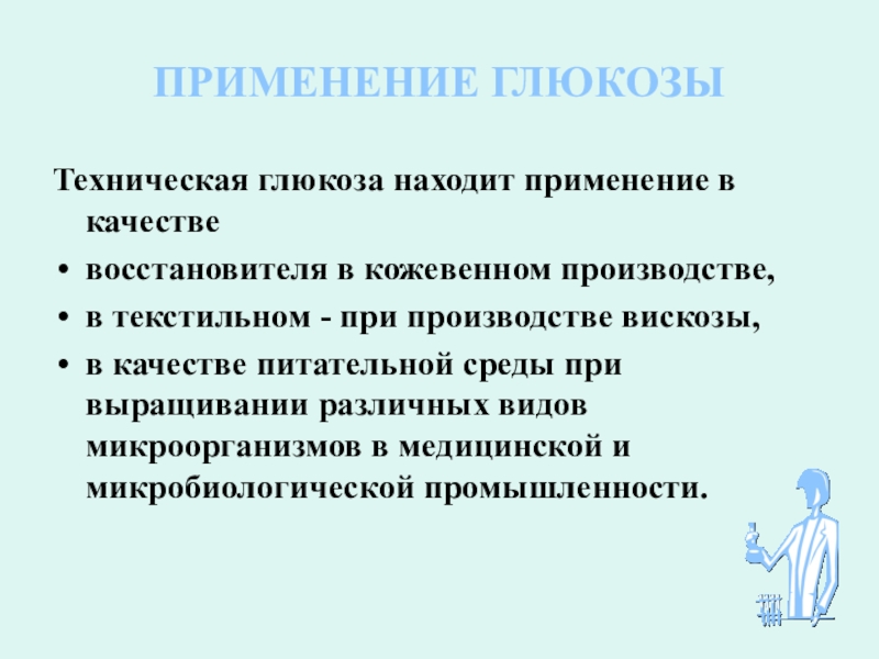 Слайд 26ПРИМЕНЕНИЕ ГЛЮКОЗЫ