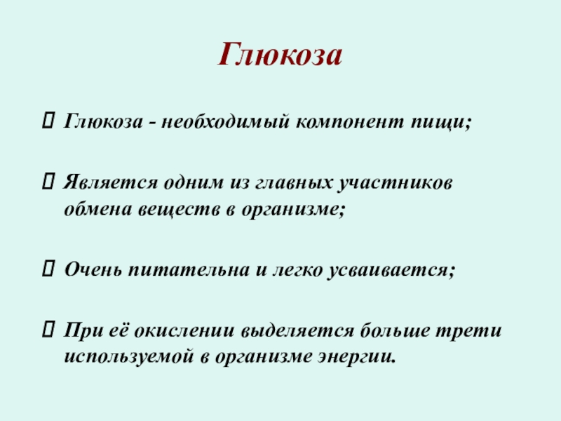 Глюкоза - необходимый компонент пищи;