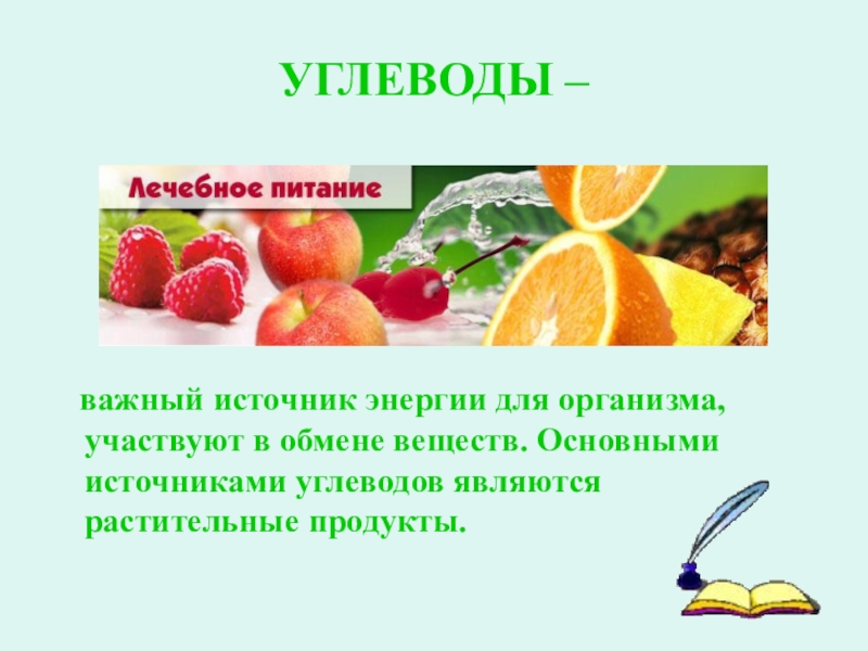 веществ. Основными источниками углеводов являются растительные продукты.