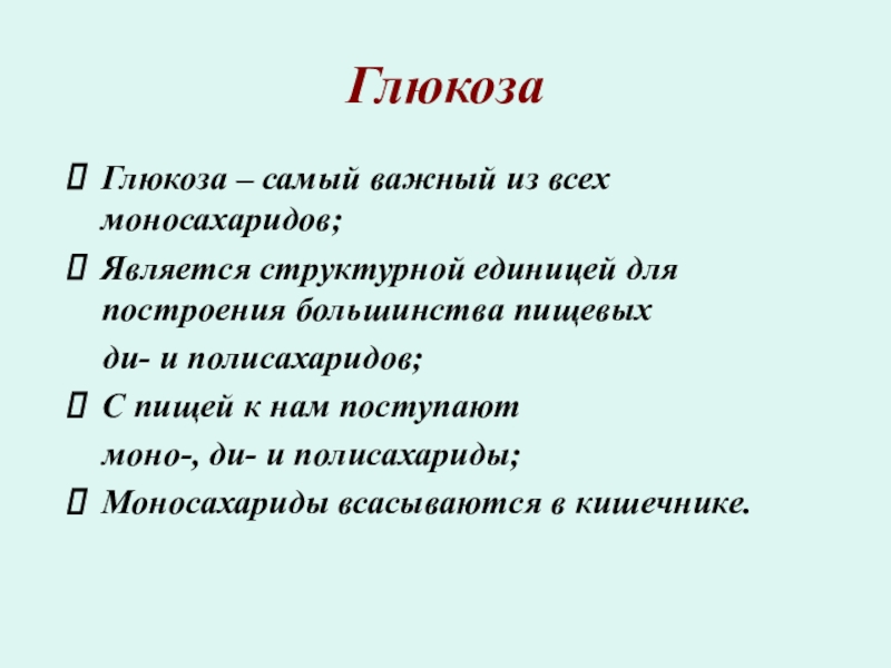 Глюкоза – самый важный из всех моносахаридов;