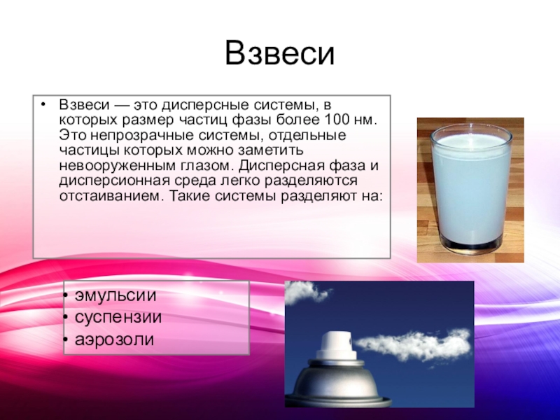 Взвеси — это дисперсные системы, в которых размер частиц фазы более