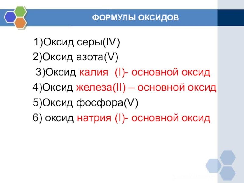 Слайд 6 ФОРМУЛЫ ОКСИДОВ