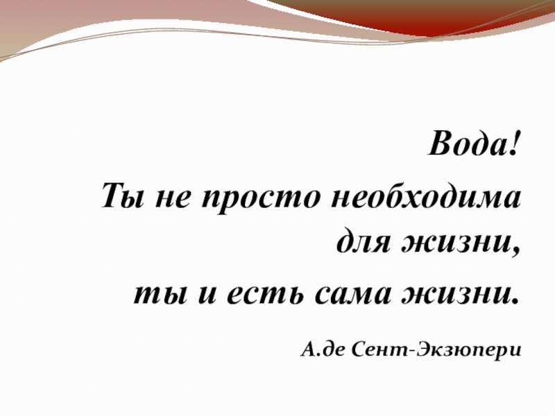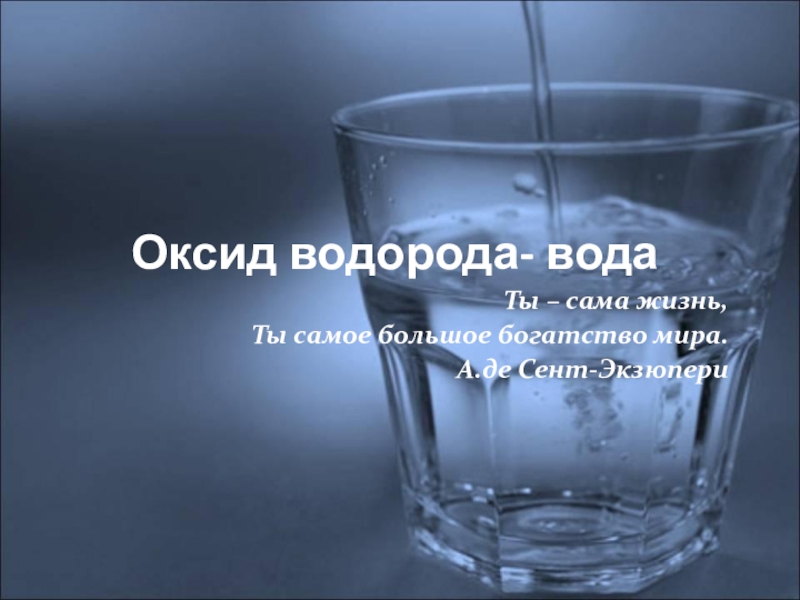 Оксид водорода- водаТы – сама жизнь,Ты самое большое богатство мира. А.де Сент-Экзюпери