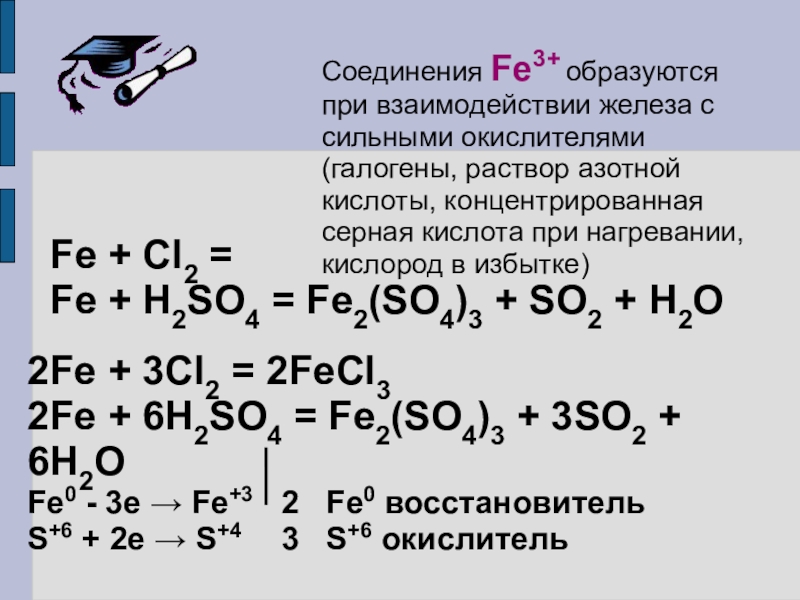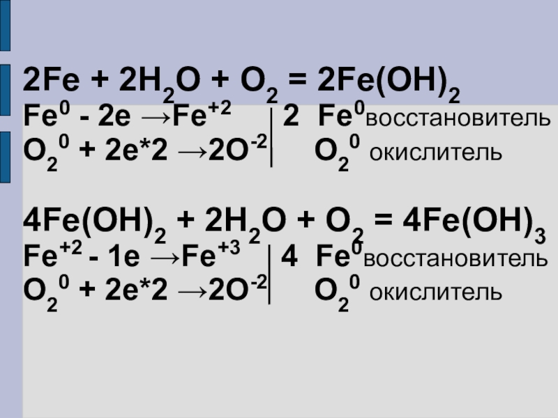 Fe0 - 3e → Fe+3 2 Fe0 восстановитель