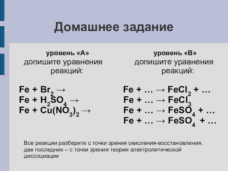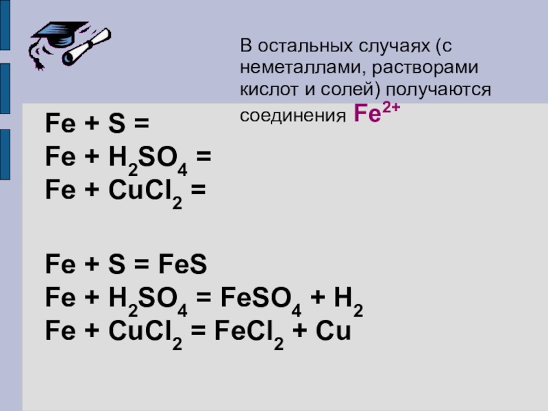 Fe + … → FeSO4 + …
