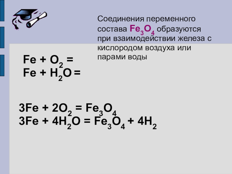 3Fe + 4H2O = Fe3O4 + 4H2